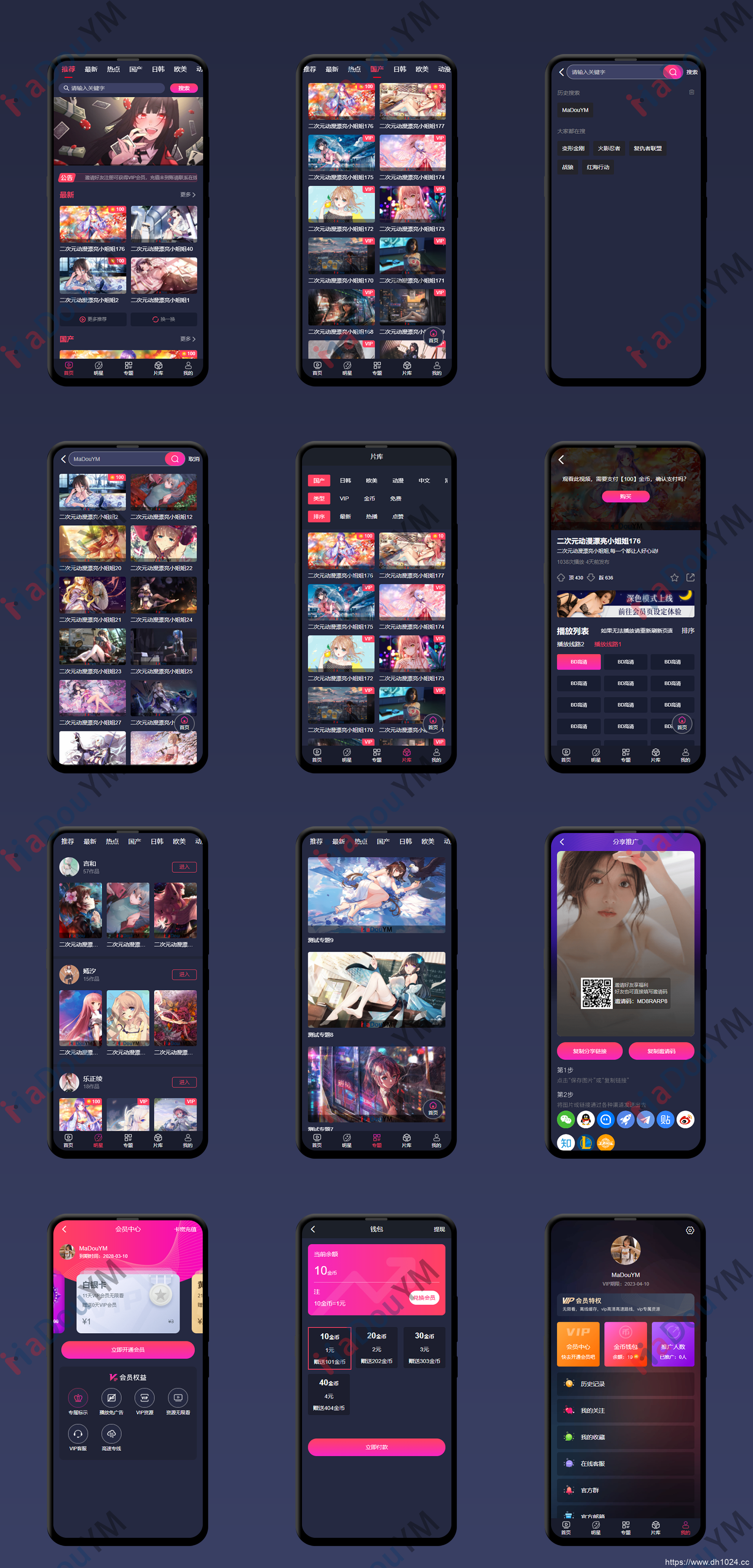 2. 视频,演员,专题,收藏,会员系统模块齐全,支持多线路选集