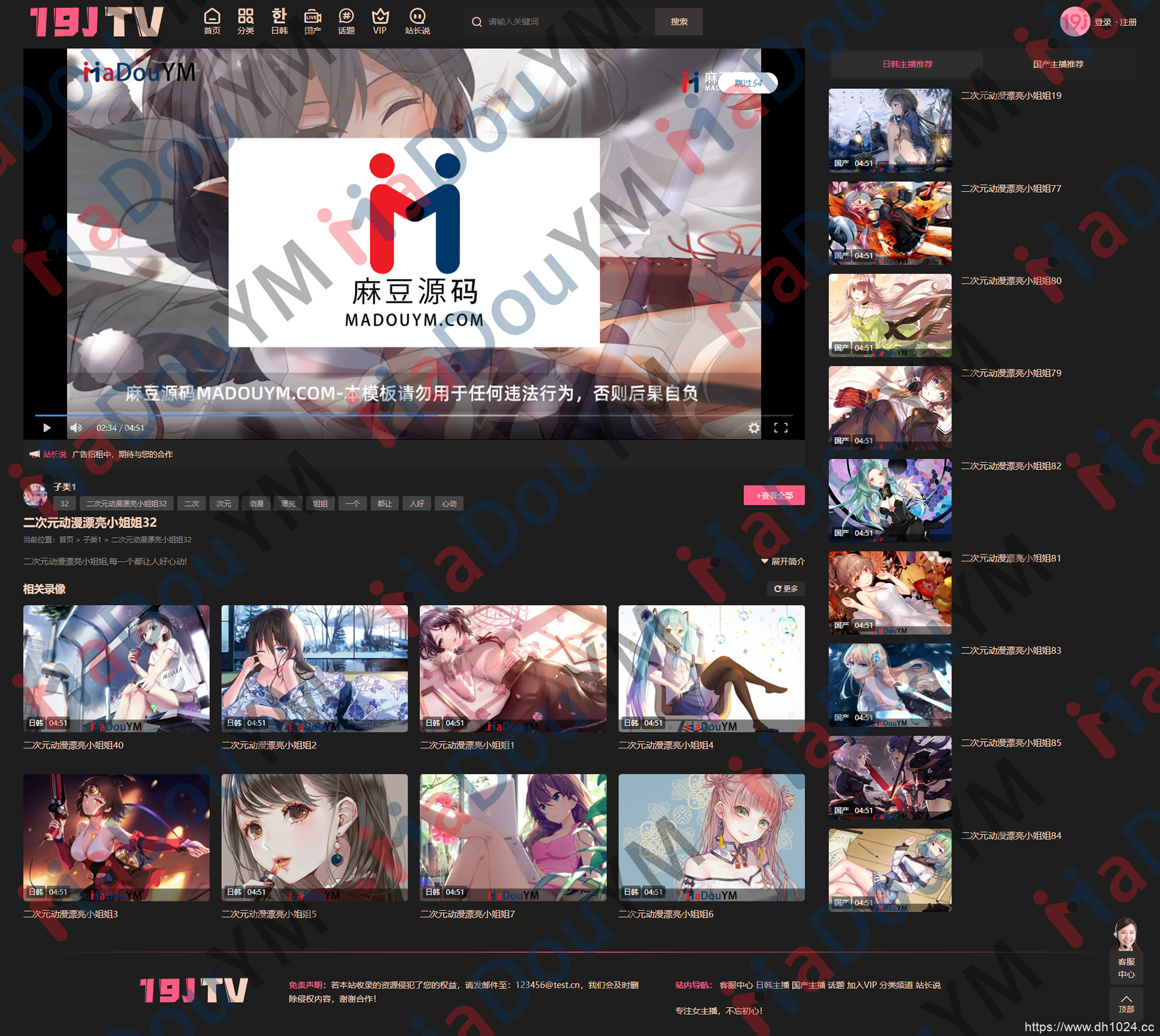 源码模板名称:麻豆源码#苹果CMS V10_主播视频网_二开苹果cms视频网站源码模板